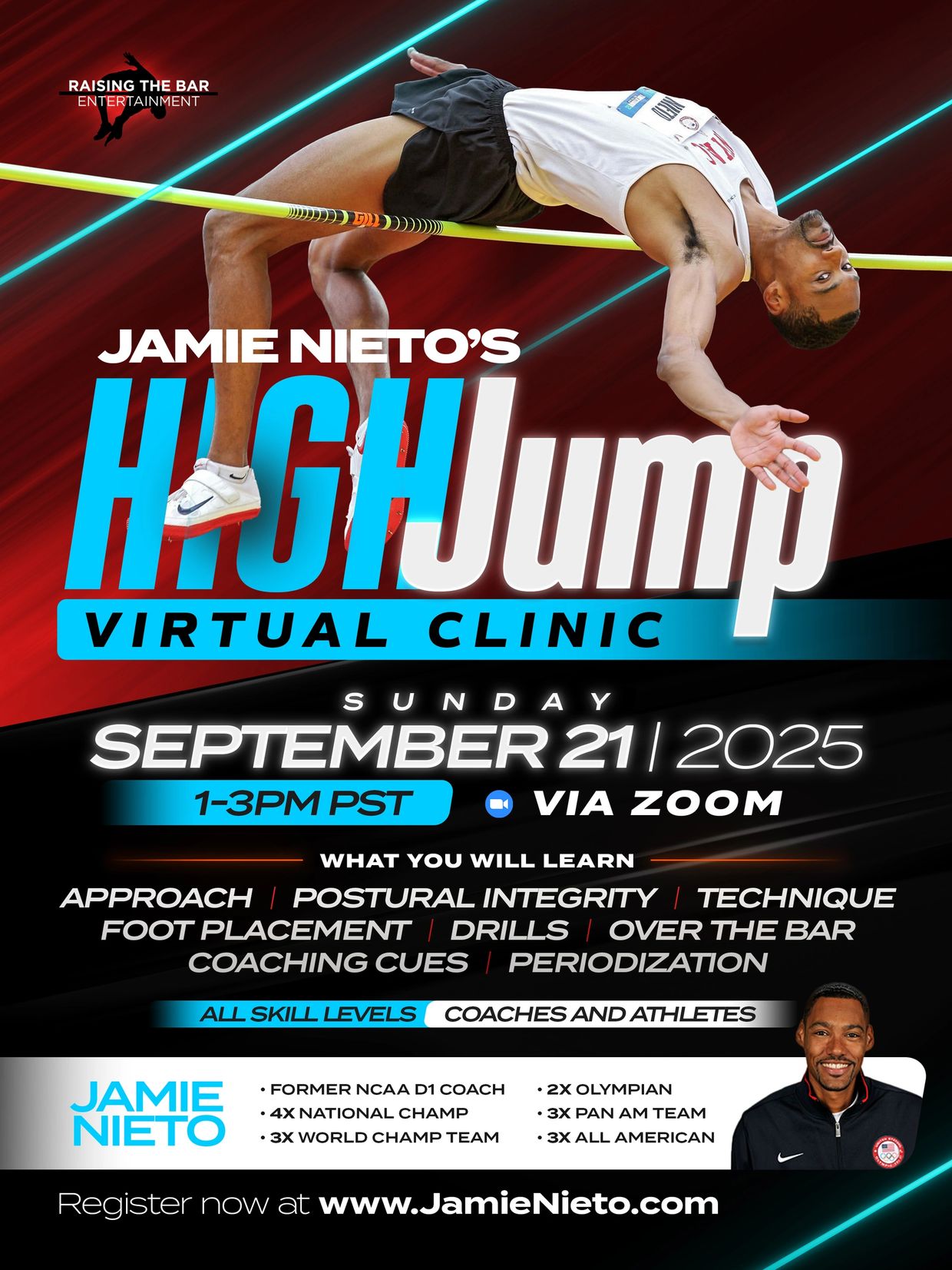 Great high jumping requires a solid training program with professional coaching. Learn about the approach, technique, and drills. Whether you are high jumping as a beginner, a seasoned competitior, or even a coach that just wants to learn more, this clinic will help you improve your overall high jump knowledge. Register now and feel free to post and share. CLICK THE BUTTON BELOW!